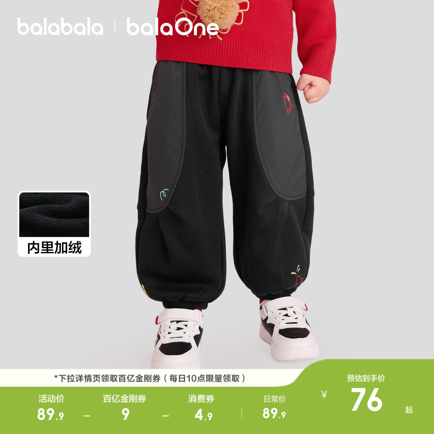巴拉巴拉童装儿童加绒长裤男女童弯刀裤子2026新款春装保暖拜年服
