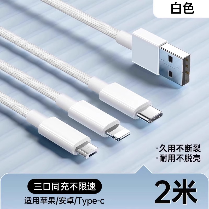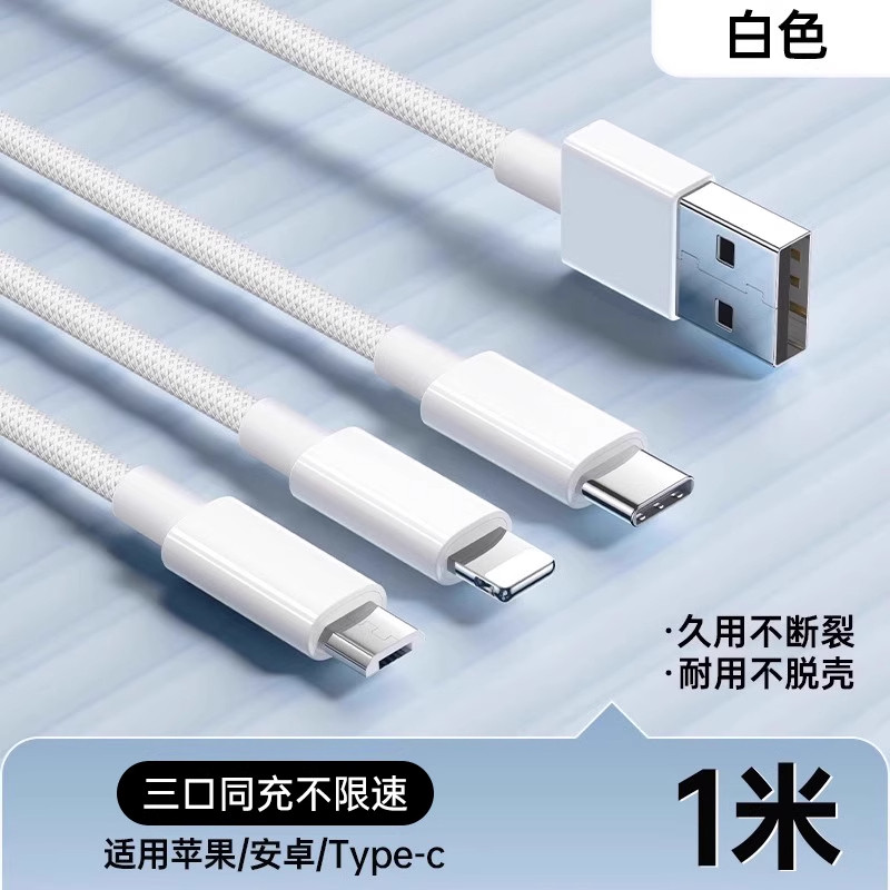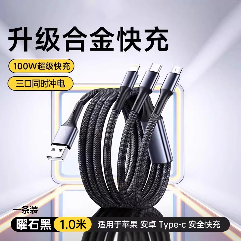 超级快充三合一数据线通用充电线适用苹果荣耀华为OPPO小米VIVO手机通用车载一拖三数据线透明芯片type-c带灯