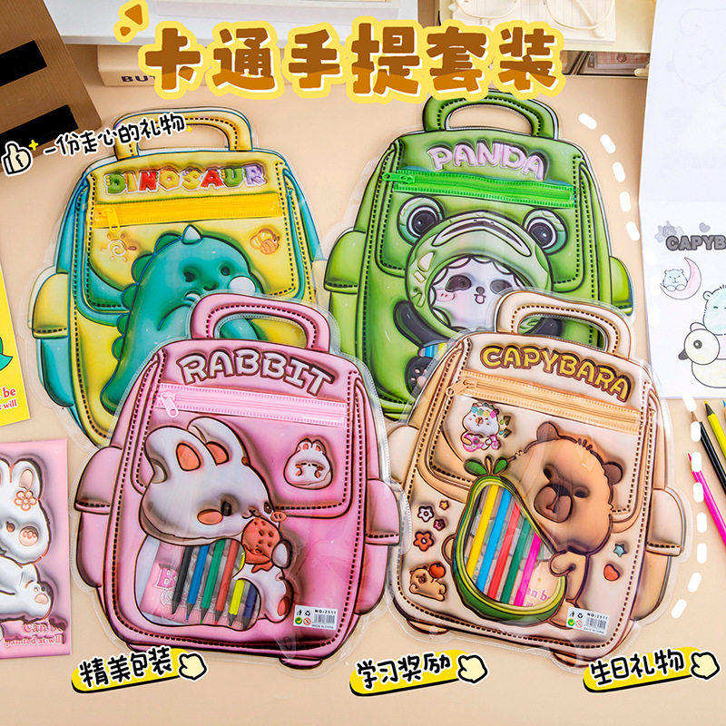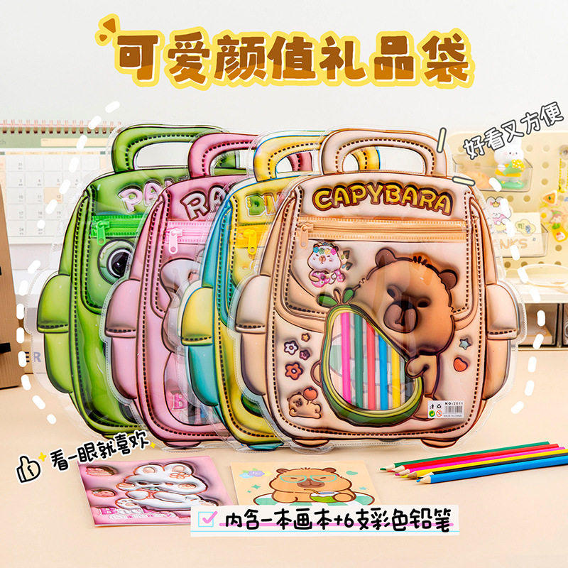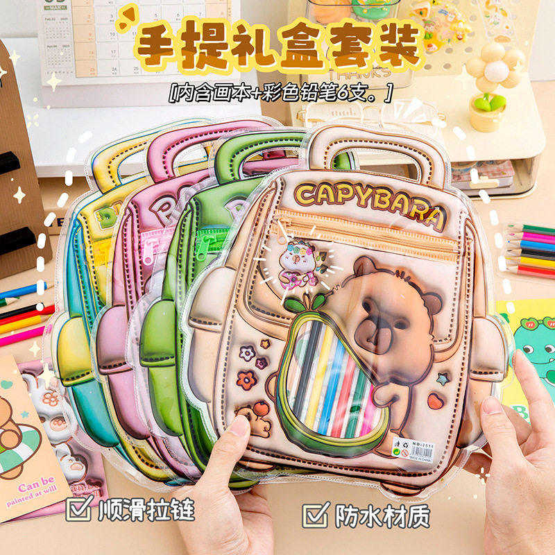 个性创意水豚手提款学生用品卡通可爱少女心卡皮巴拉膨胀文具套装