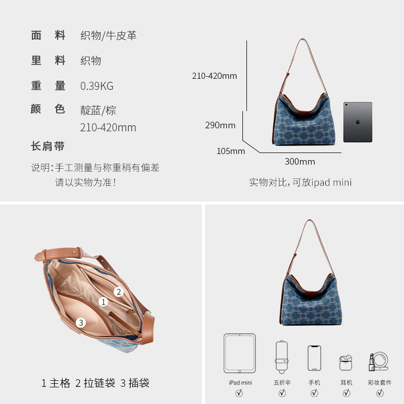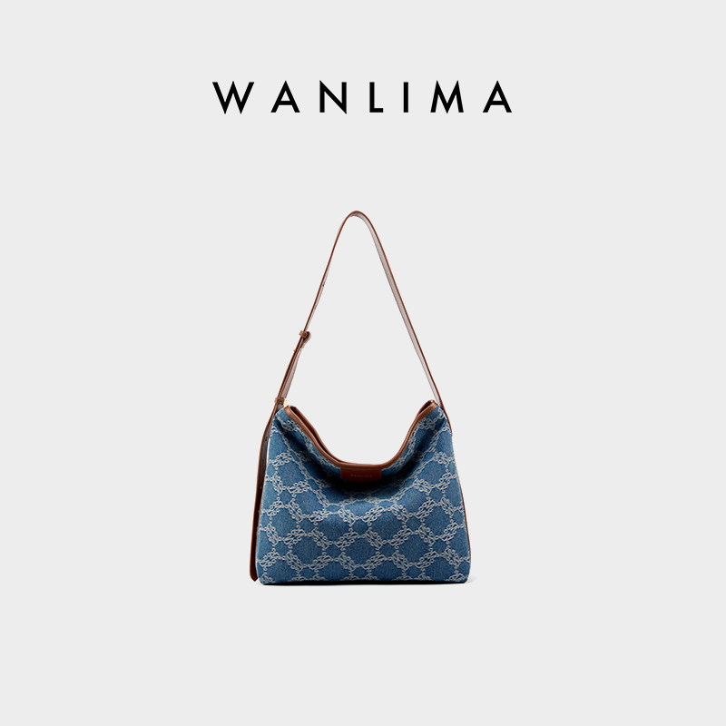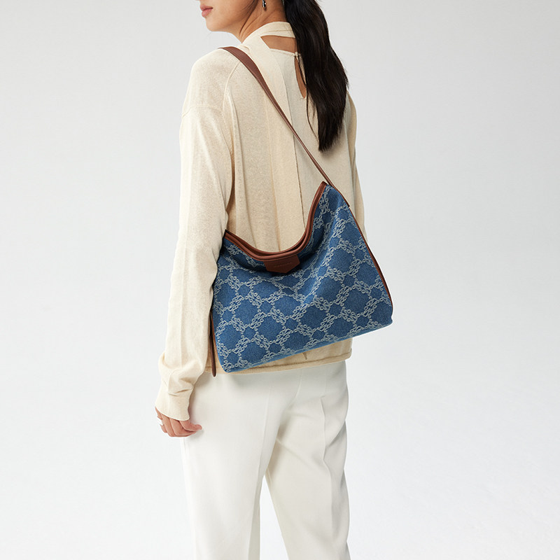 万里马丹宁HOBO包女大容量托特包斜挎牛仔老花包通勤腋下链条包