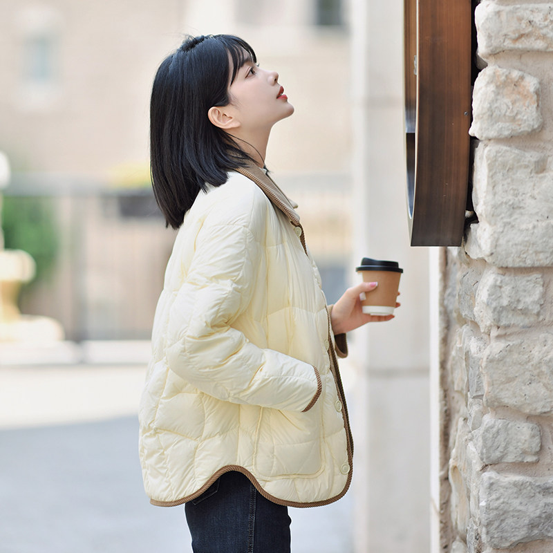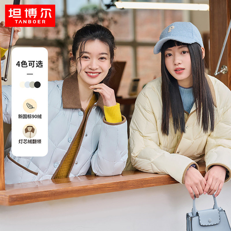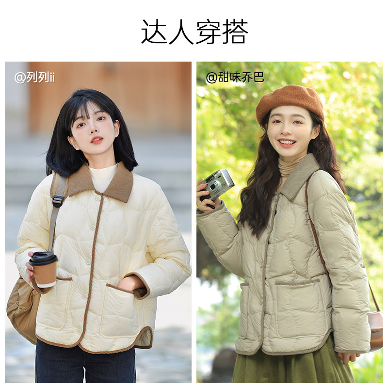 坦博尔衬衫领饼干羽绒服女轻薄短款时尚流行翻领韩版百搭外套