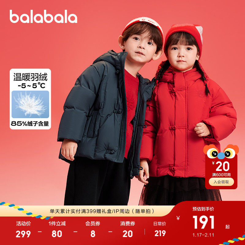 巴拉巴拉童装儿童羽绒服新中式冬装男童女童宝宝连帽外套潮流保暖