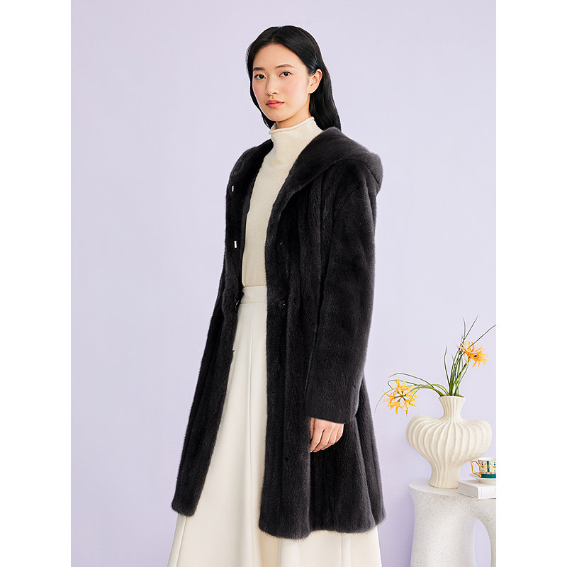 YINER音儿专选2025冬季新款中长款连帽整貂母貂水貂毛皮草外套