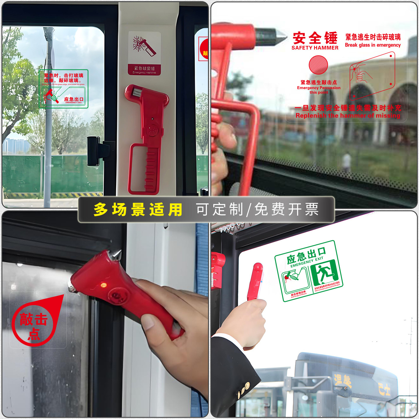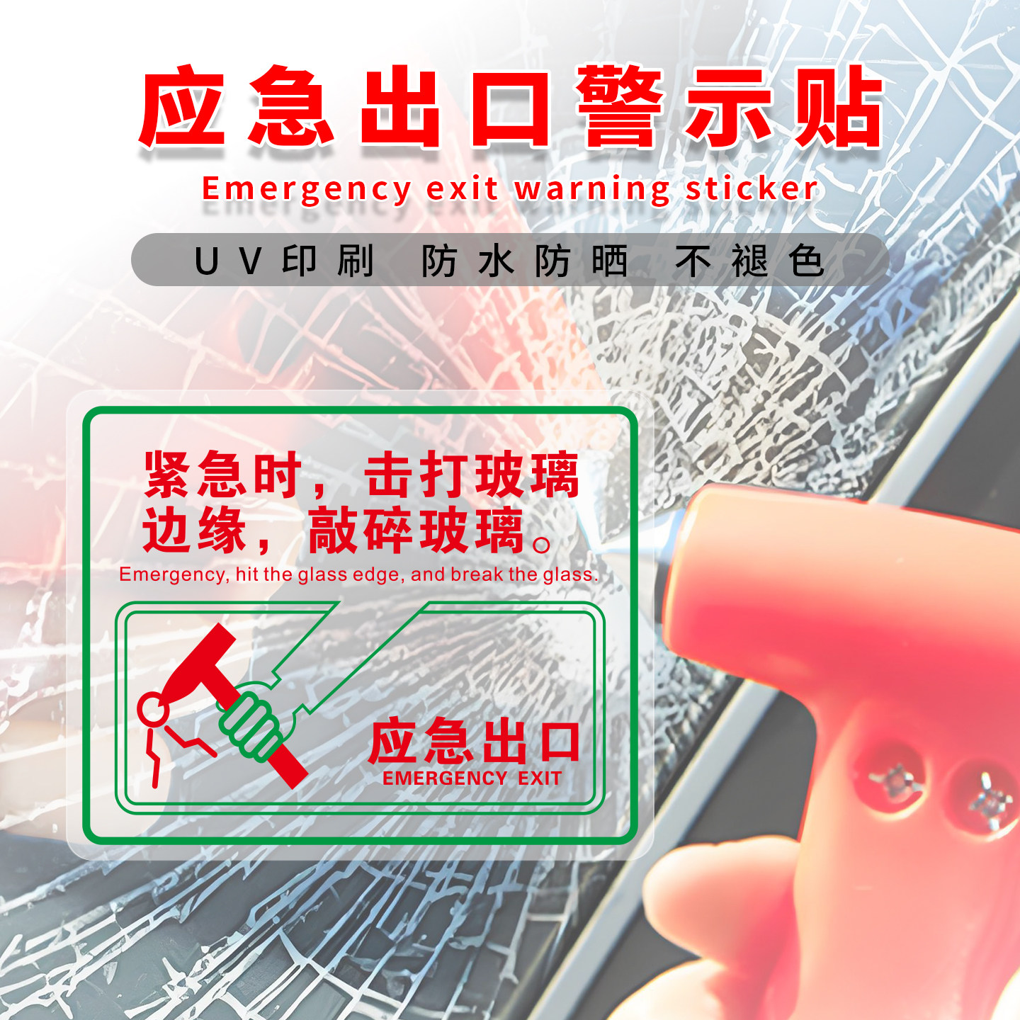 应急出口透明贴消防逃生窗口标识牌汽车公交大巴车窗安全标志贴纸