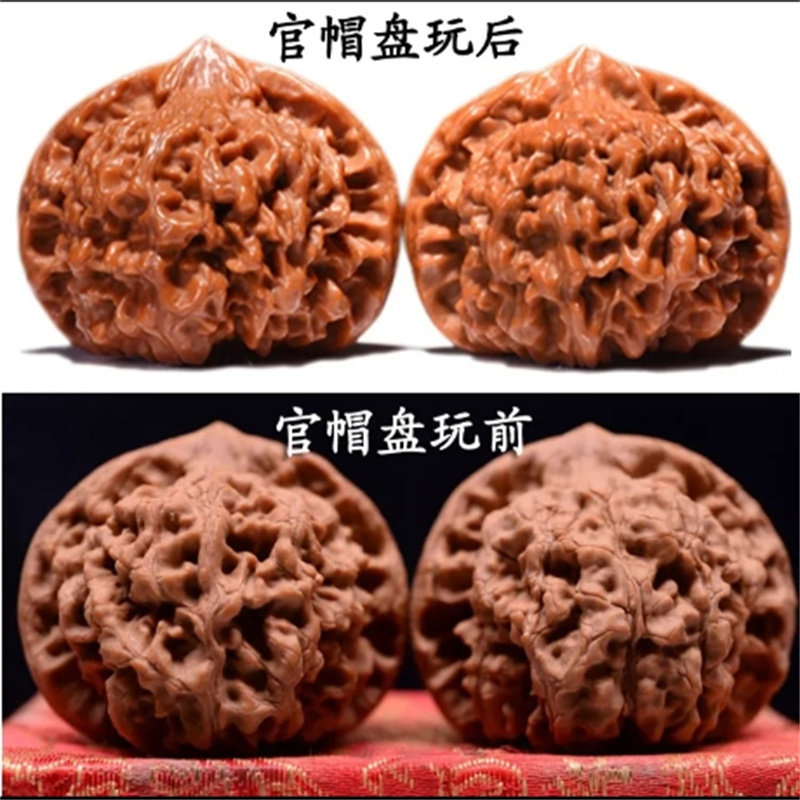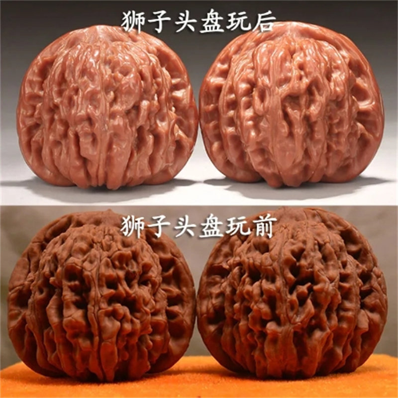 文玩核桃白狮子头手玩把件麒麟纹官帽四座楼苹果园精品对虎头麦穗