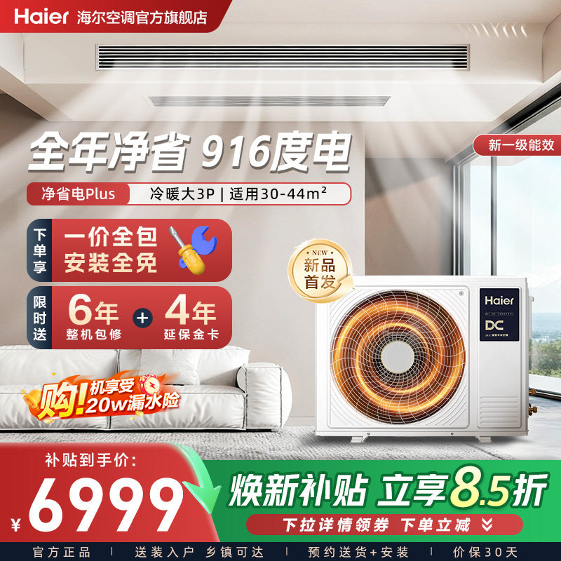 【新品】海尔净省电plus中央空调风管机大3匹超一级变频客厅