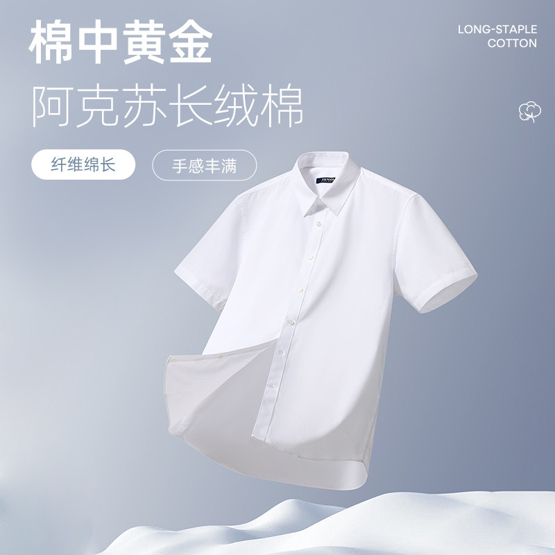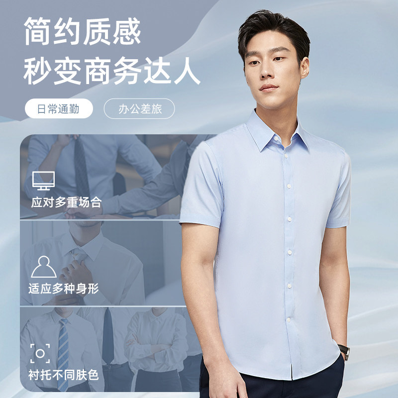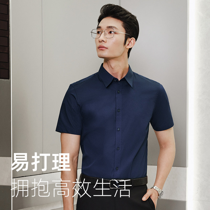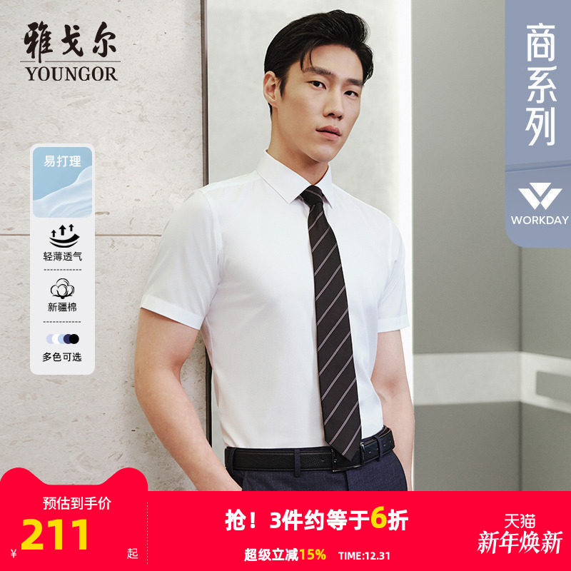 【棉涤易烫】雅戈尔短袖衬衫夏季商务休闲纯白修身职业衬衣男4097