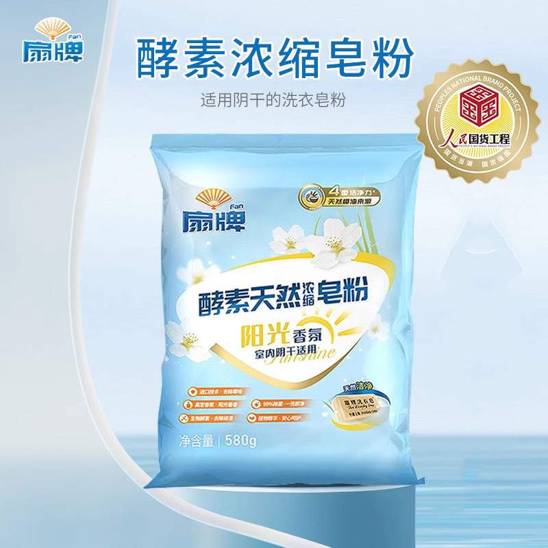 扇牌酵素天然浓缩皂粉580g家庭装洗衣粉上海制皂阳光香氛老牌国货