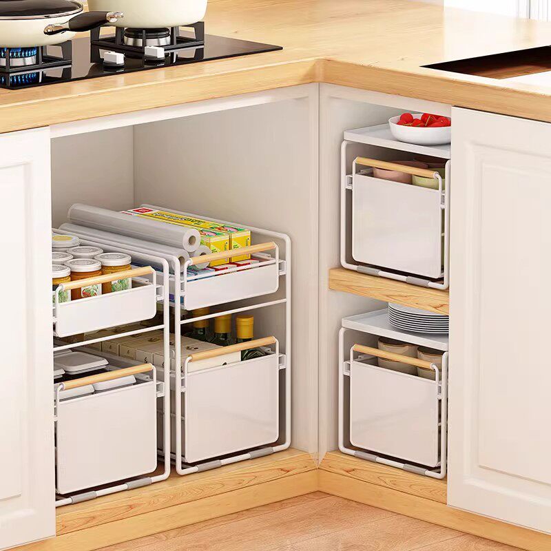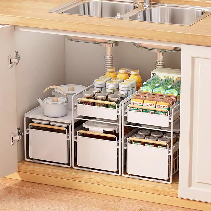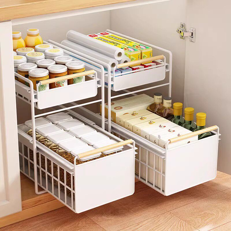 分层厨房抽拉式置物架橱柜拉篮调料收纳架下水槽柜内双层内置