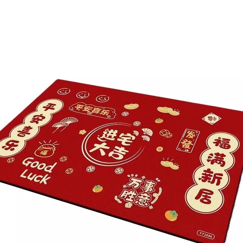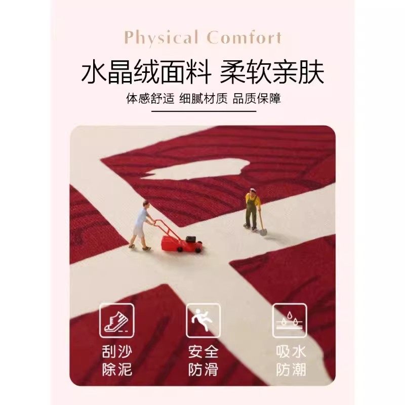 新年防滑入户门地垫家用脚垫地毯红色乔迁垫子吸水客厅卧室新居