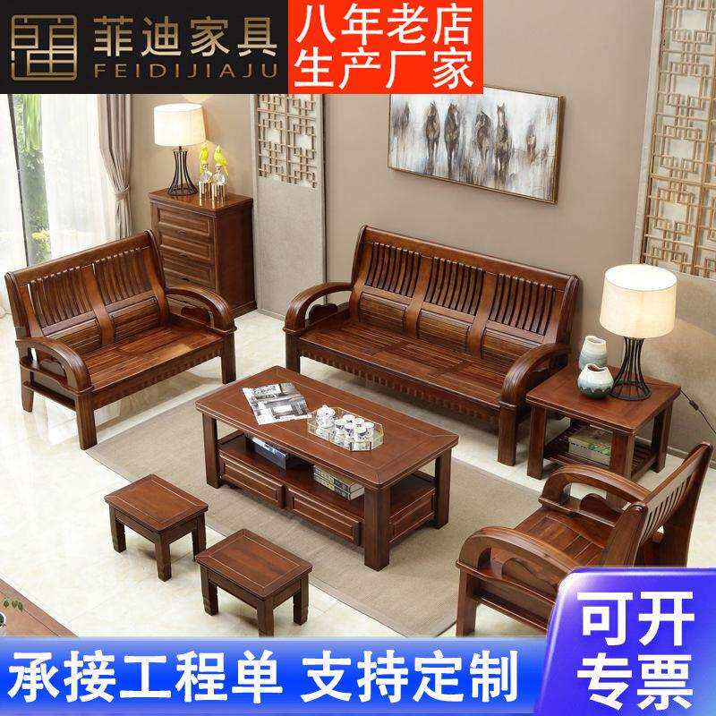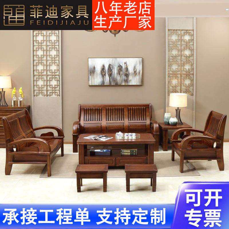 菲迪家具实木沙发香樟木中式办公沙发组合新中式客厅家具工程接待