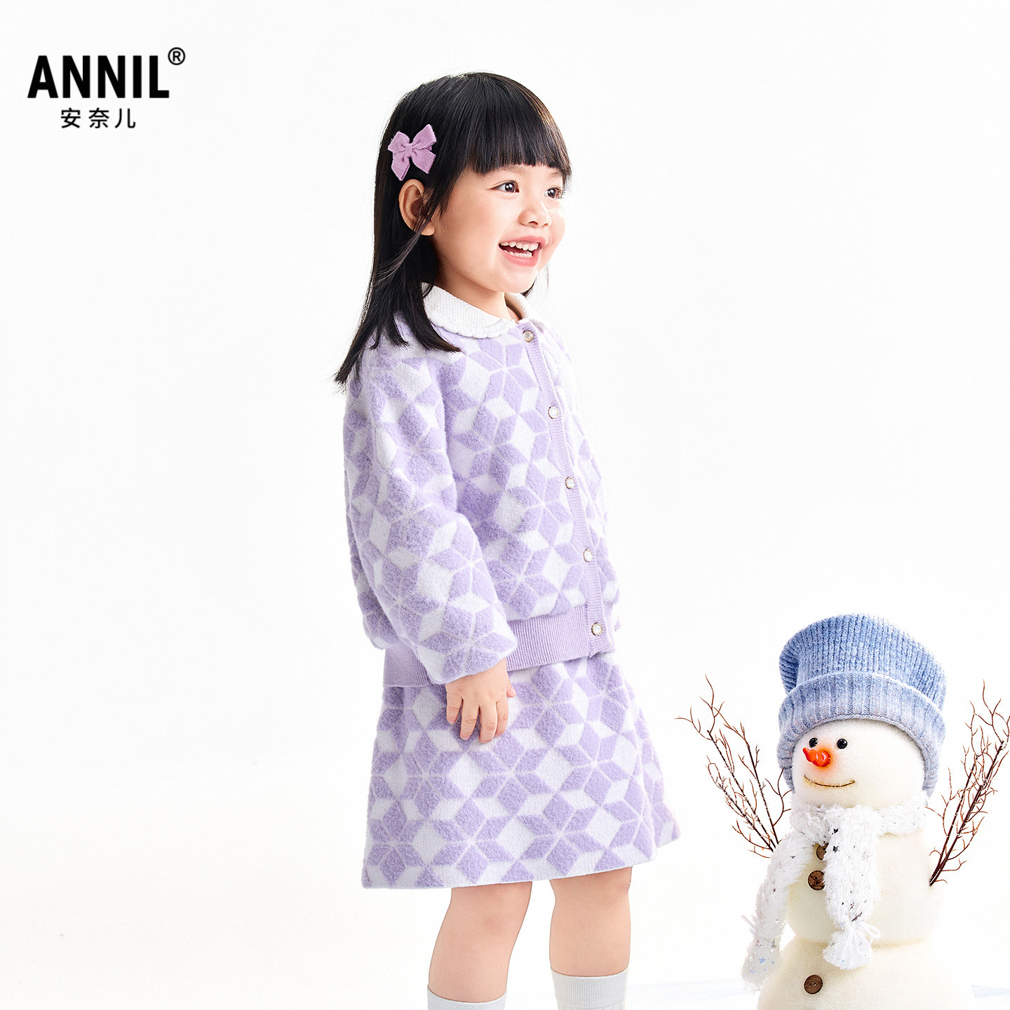 【商场同款】安奈儿童装女童长袖针织套装裙冬新款XG544016