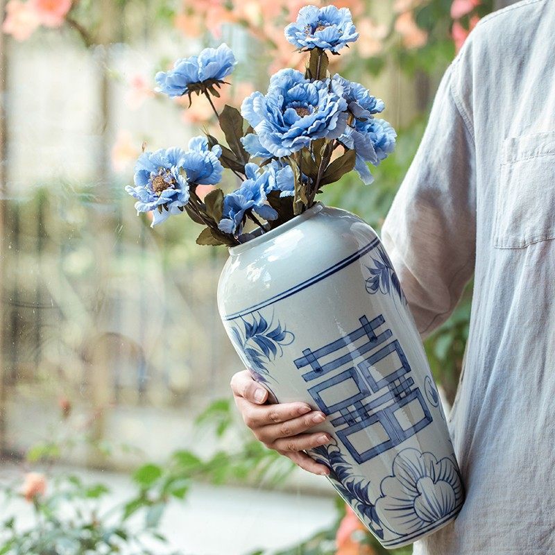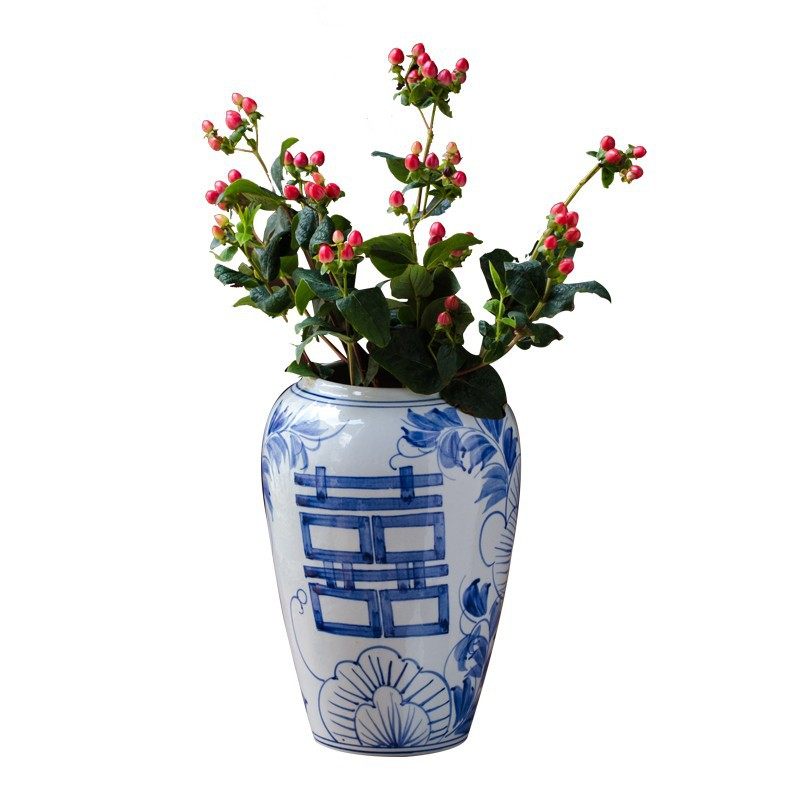 青花瓷花瓶景德镇陶瓷器花瓶插花喜字仿古中式家居客厅小装饰瓷瓶