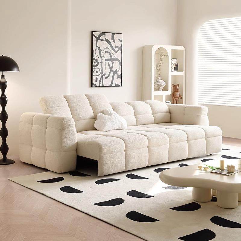 奶油风棉花糖电动伸缩沙发床客厅轻奢布艺沙发小户型直排功能沙发