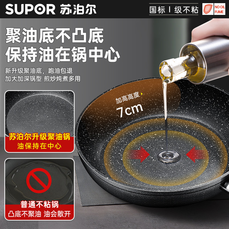 苏泊尔平底锅不粘锅家用麦饭石炒锅煎饼蛋锅牛排锅电磁炉不沾煎锅