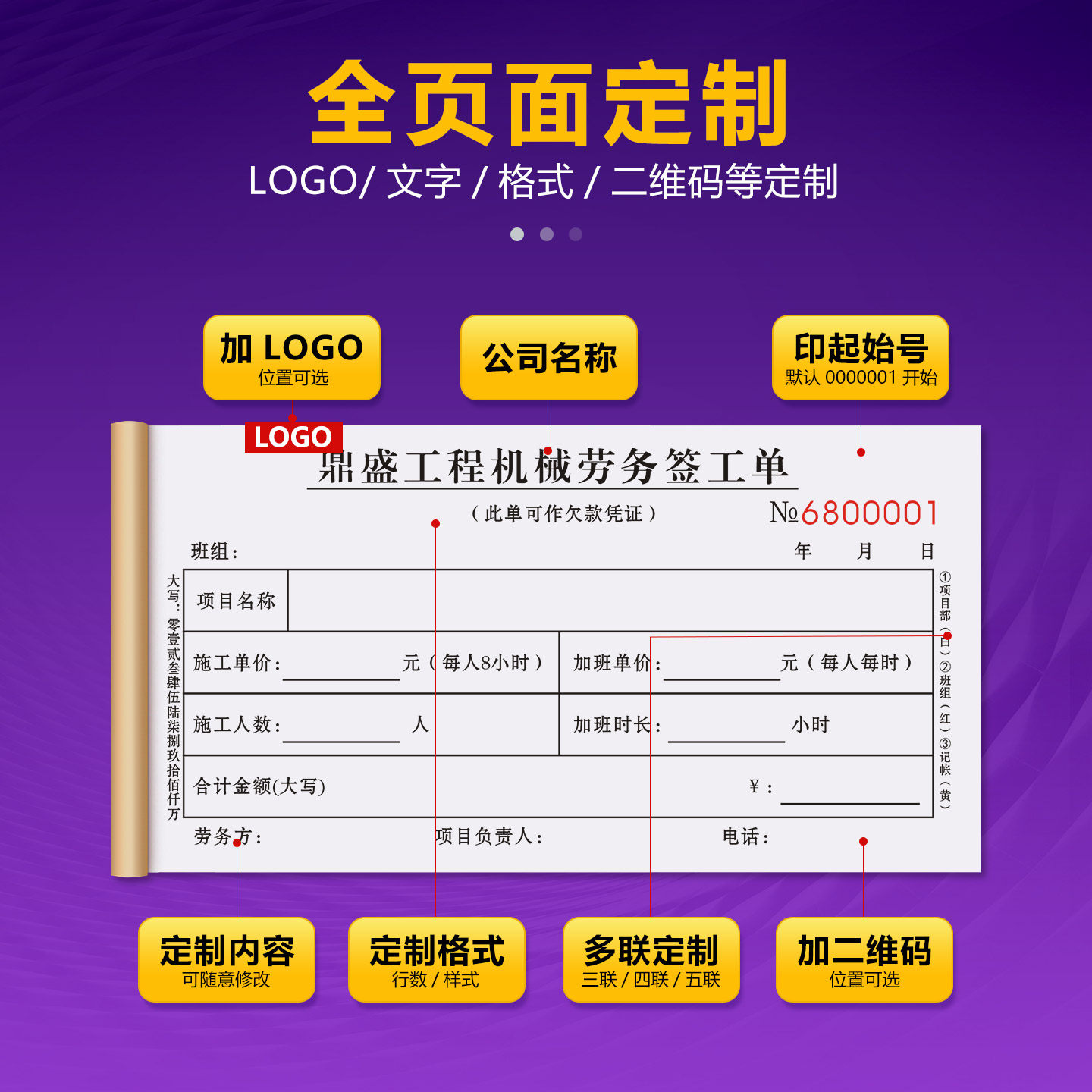 【劳务用工签证单】定制二联建筑工地临时派工结算单工程现场零星用工签工单项目零工工时确认单钟点工工资单