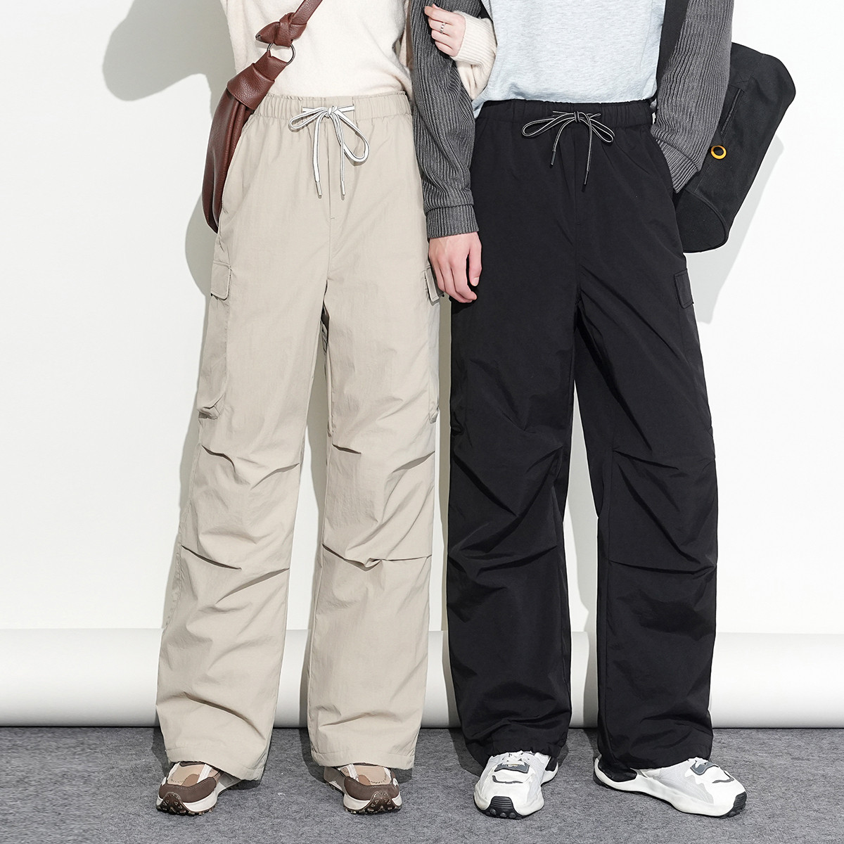 雪中飞2026春新款工装羽绒裤男女情侣户外休闲冲锋保暖伞兵裤百搭