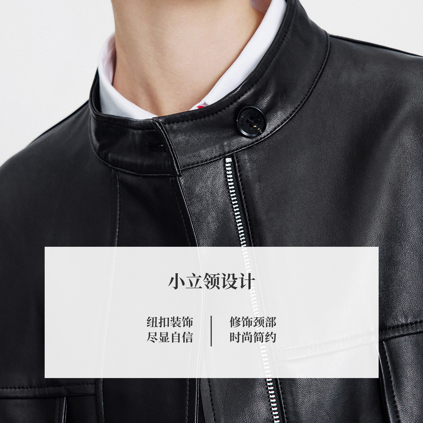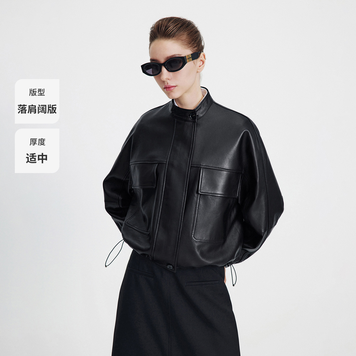 Navigare意大利小帆船黑色立领真皮皮衣女春秋季新款落肩羊皮外套