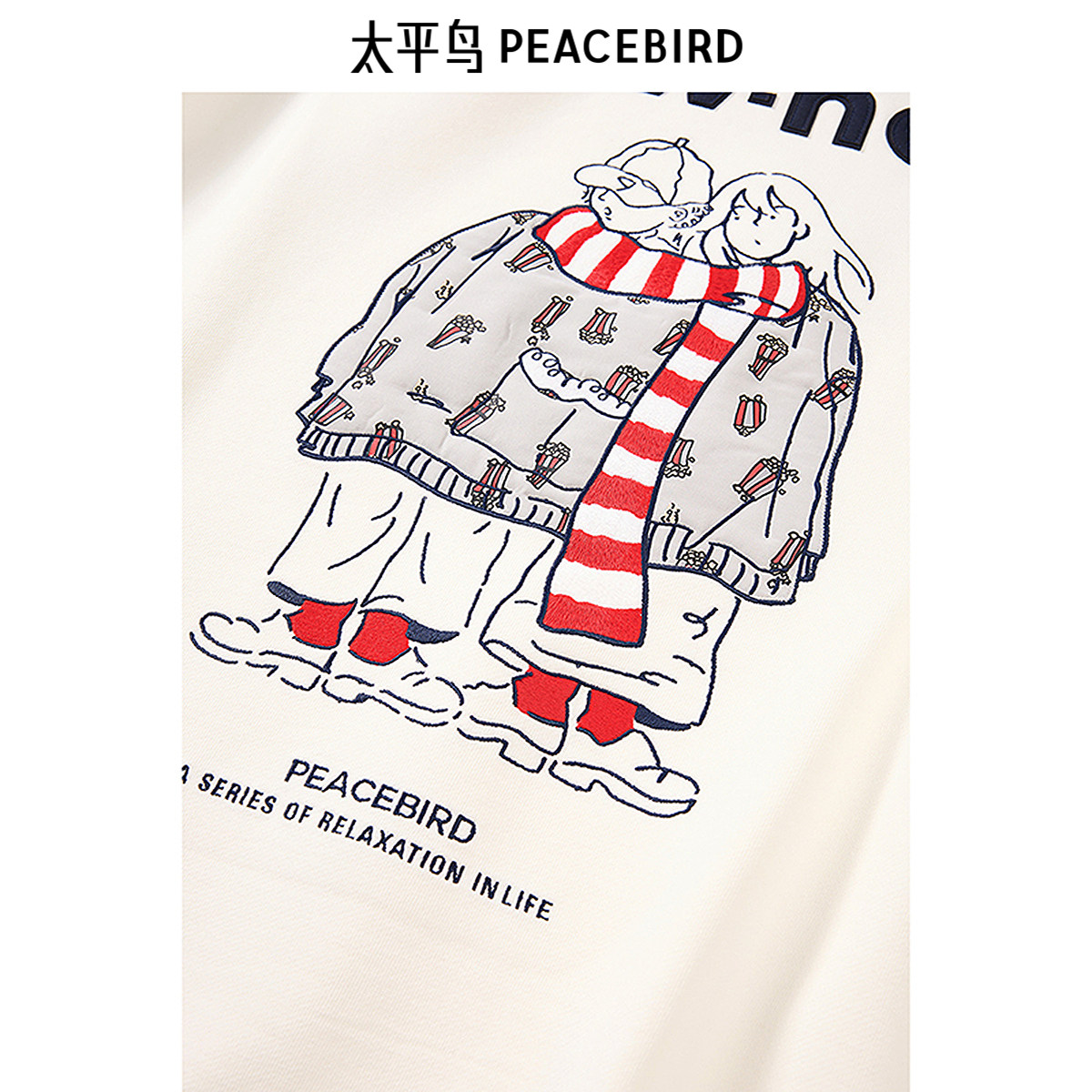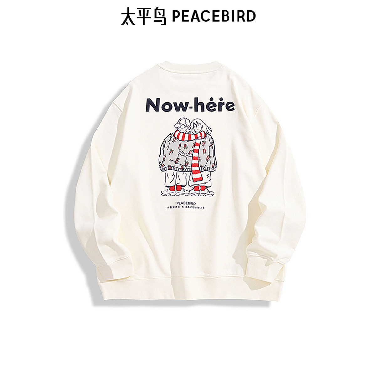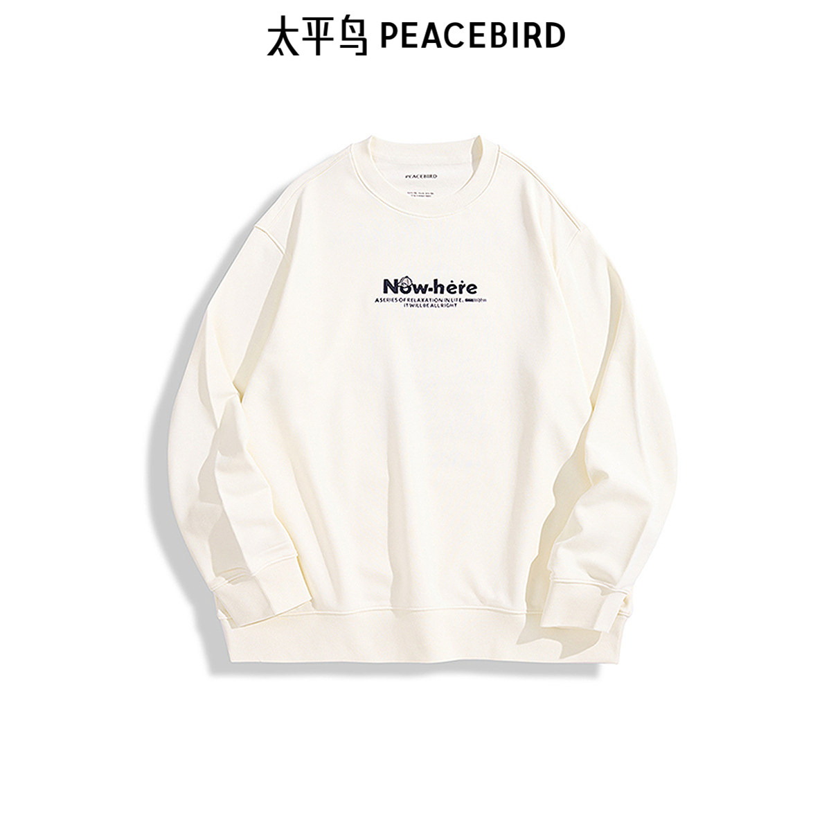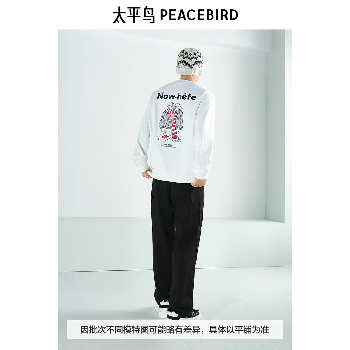 太平鸟男装 休闲宽松圆领上衣青年潮流潮牌后背撞色刺绣卫衣