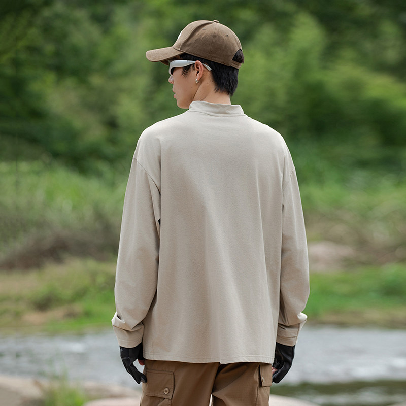 INS纯棉25韩国ins复古基础款纯色秋季打底衫内搭男女长袖T恤bf风