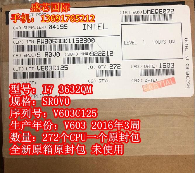全新原装针脚正式版PGA I7 3632QM CPU SR0V0 I7 3612QM SR0MQ