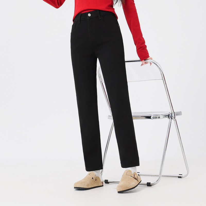 JW真维斯女装休闲裤 冬季纯色绒底长裤女生修身小脚裤子