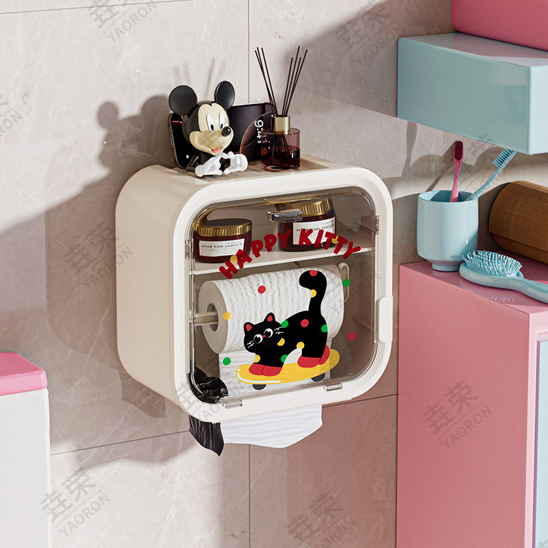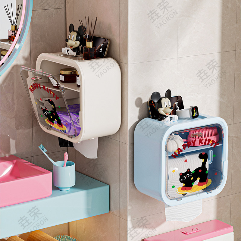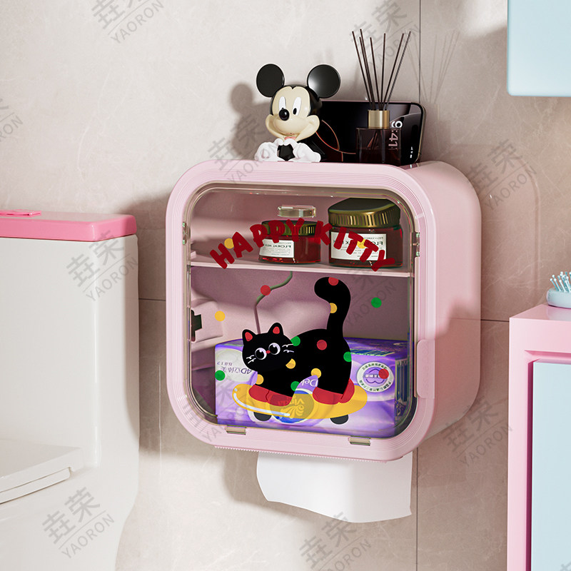 卡通猫卫生间纸巾盒免打孔壁挂式高颜值卷纸抽纸盒浴室防水多巴胺