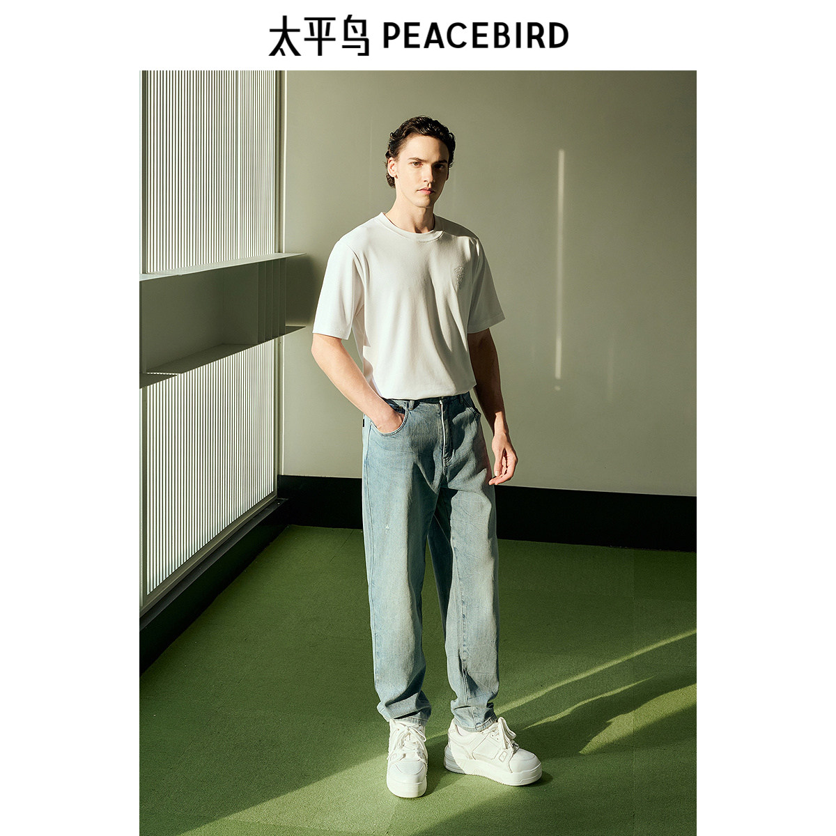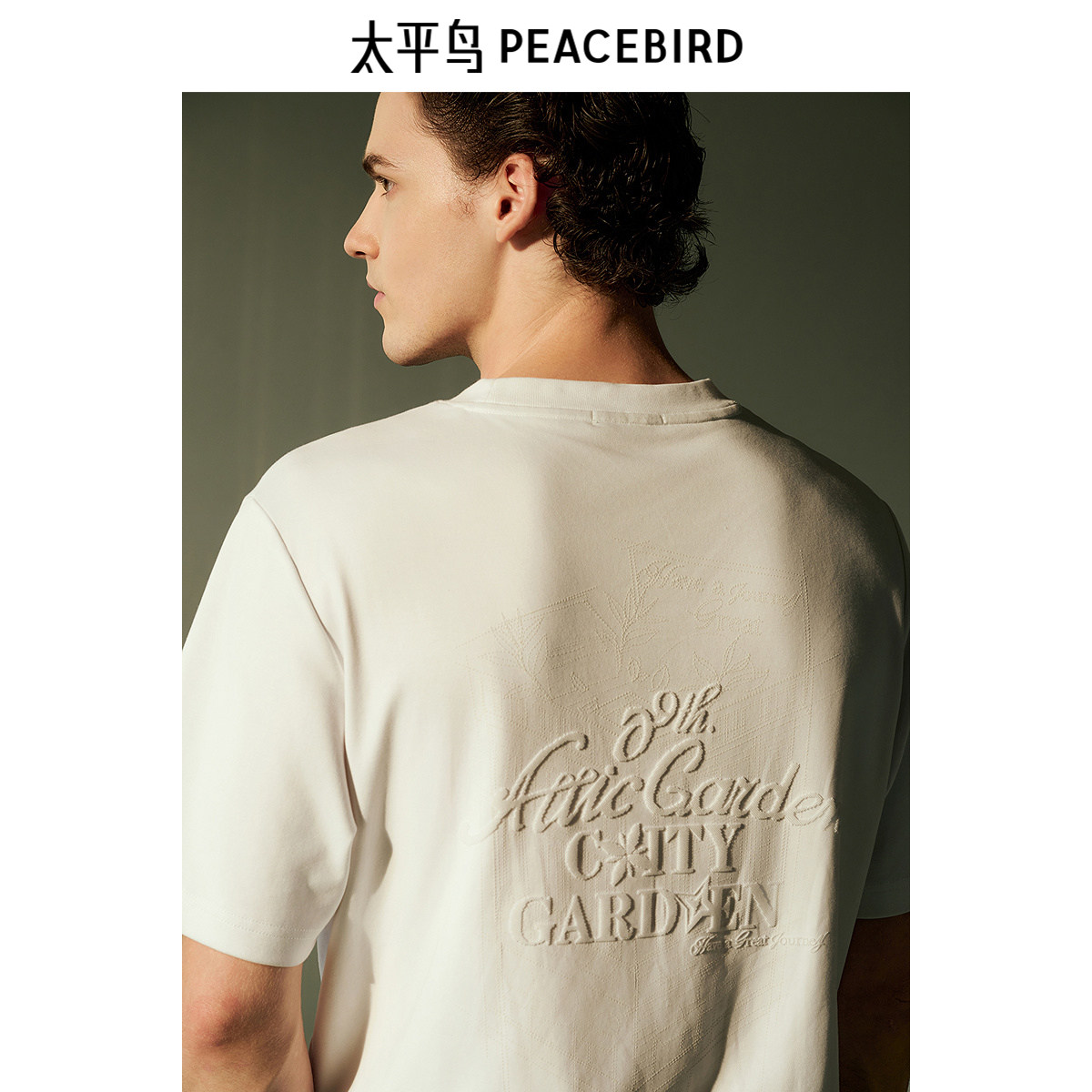 太平鸟男装 白色圆领T恤春夏背后字母刺绣净色刺绣短袖体恤男
