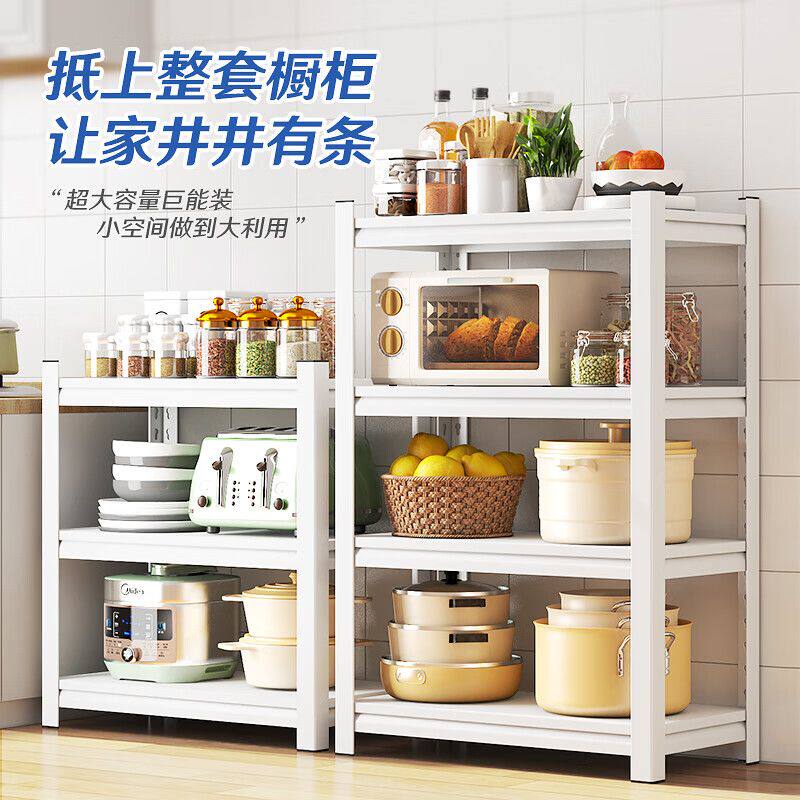 白碳钢厨房置物架落地多层仓储货架家用阳台储藏加厚钢制书架超厚