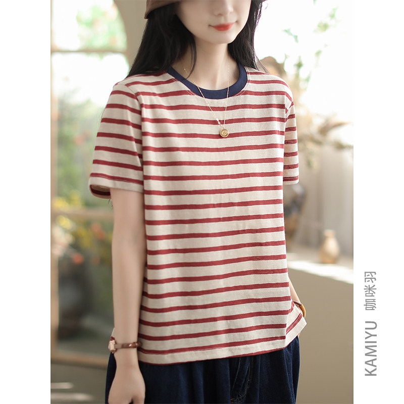 咖咪羽T恤女夏装2025新款女士复古百搭拼接宽松休闲女装上衣短袖