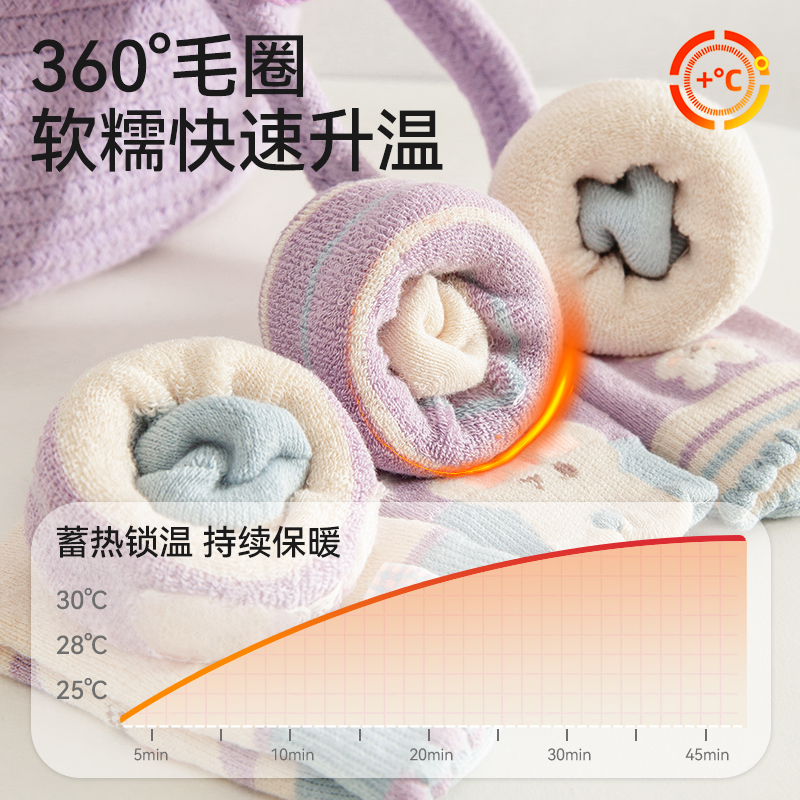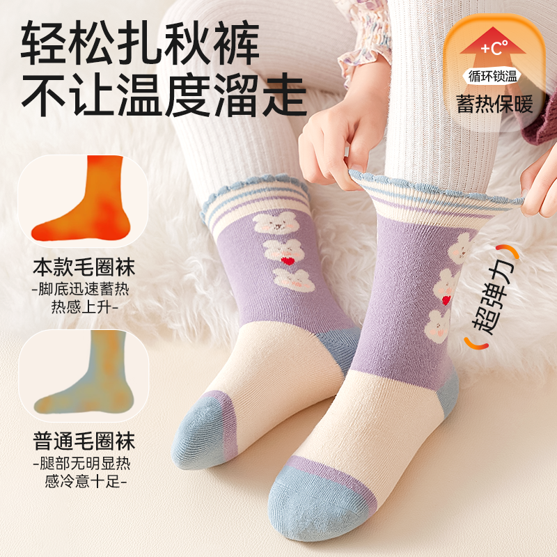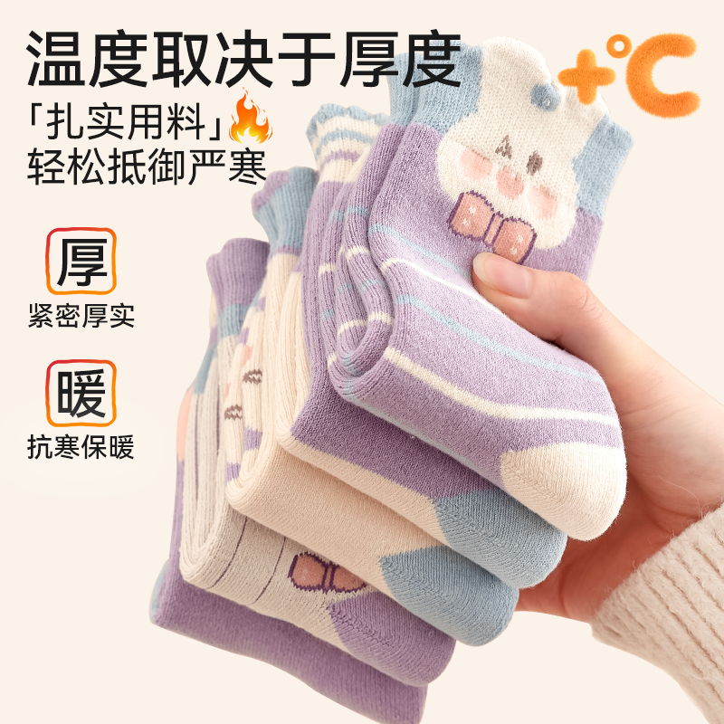 儿童袜子女童秋冬加绒加厚毛圈袜厚款冬季保暖女孩宝宝纯棉中筒袜