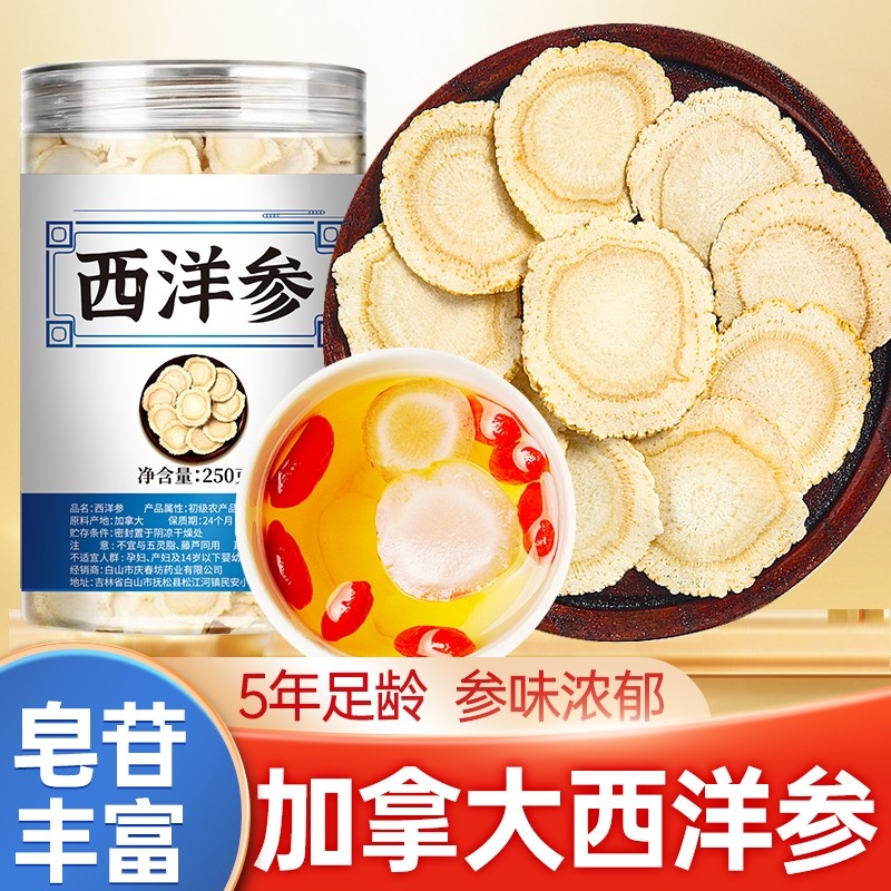 西洋参片滋补正品官方旗舰店泡酒非中药材花旗参中大片500g