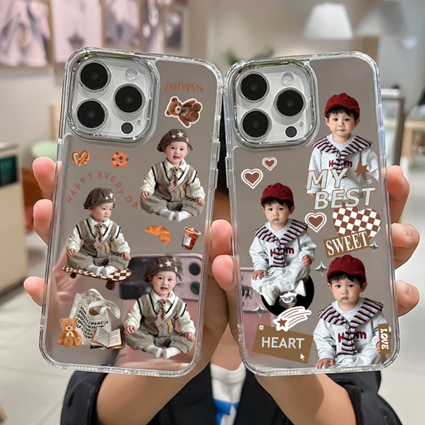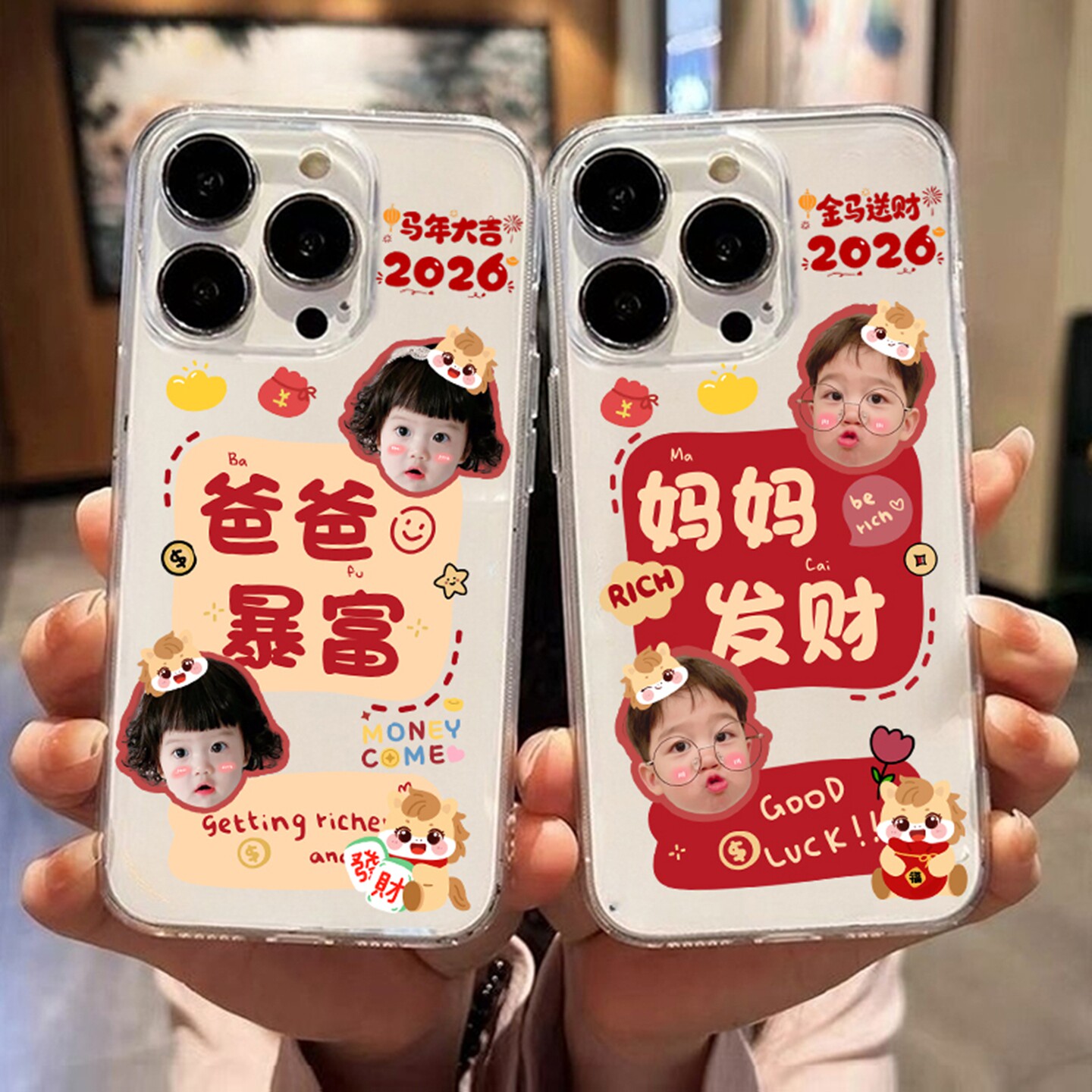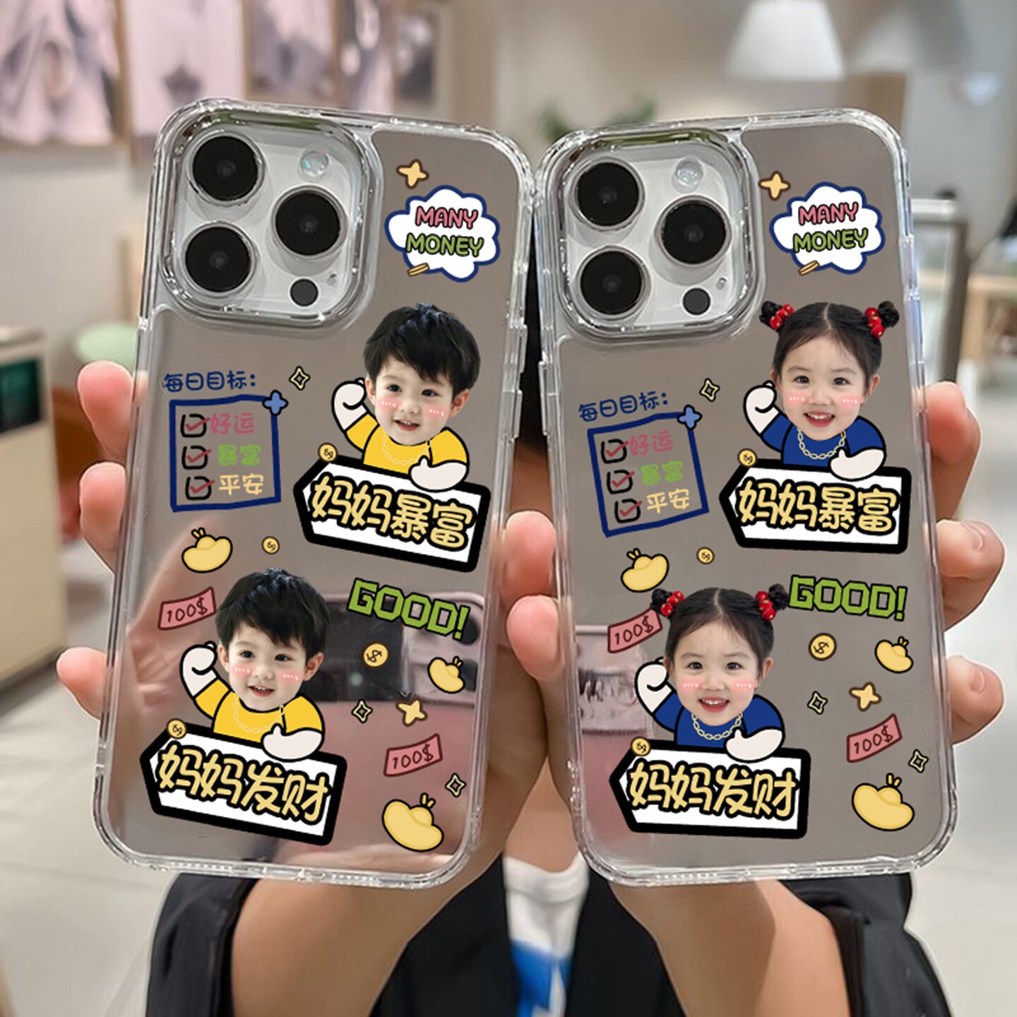 来图订制iphone16PROMAX定制手机壳diy适用苹果17情侣宝宝照片14宠物猫狗图案15华为13镜面透明磁吸任意型号