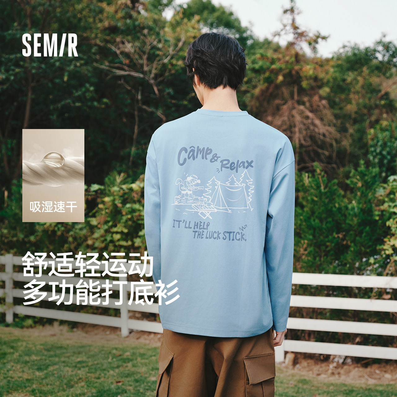 森马长袖T恤男春季速干图案圆领打底衫2026新小宽松字母印花上衣