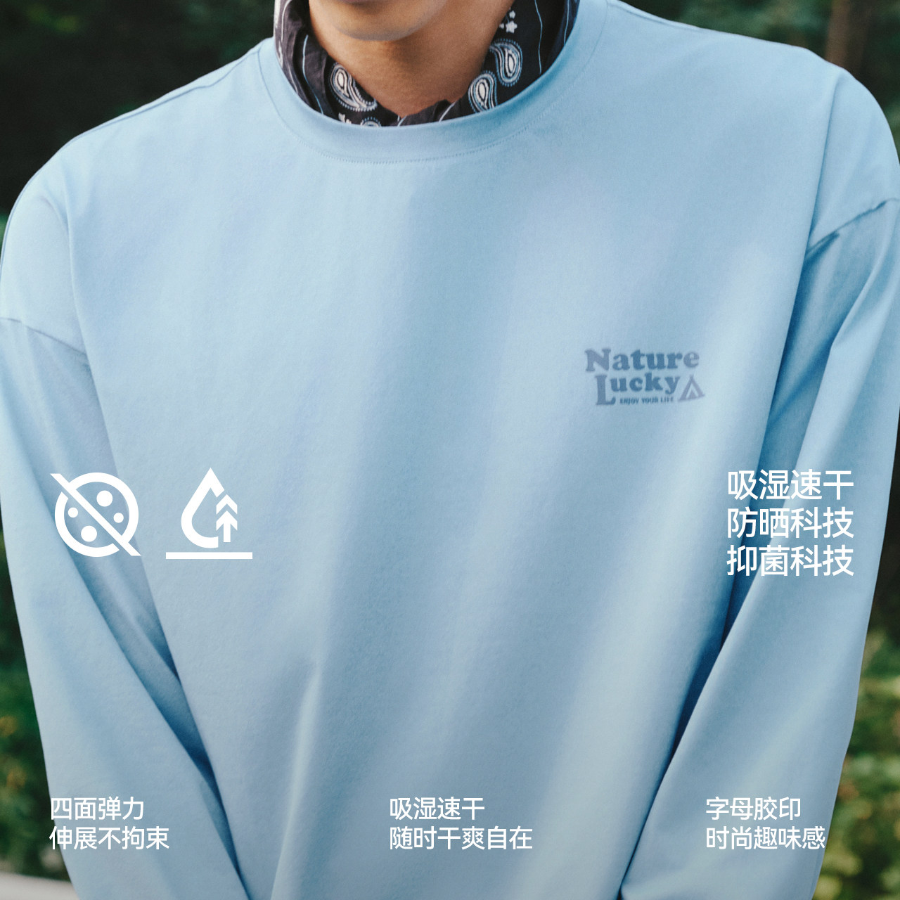 速干圆领打底衫 印花图案长袖T恤