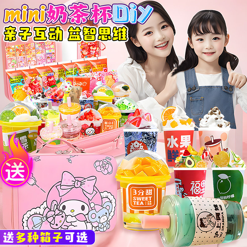 新款儿童手工玩具迷你奶茶杯创意奶油胶diy材料包套装食玩小挂件