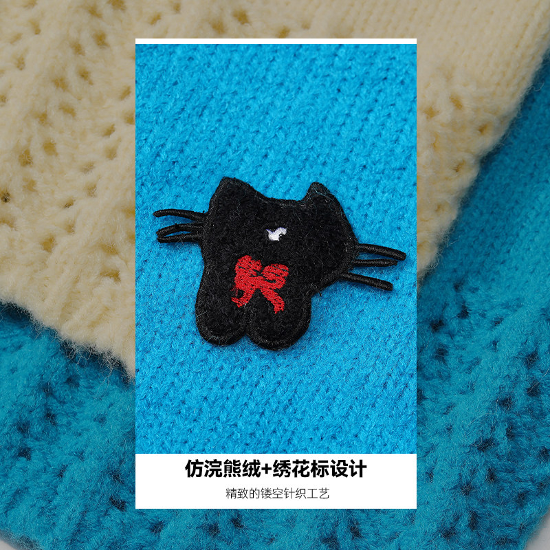 妖精的口袋甜美蓝色镂空拼接新年毛衣女2025冬新款慵懒风甜美内搭