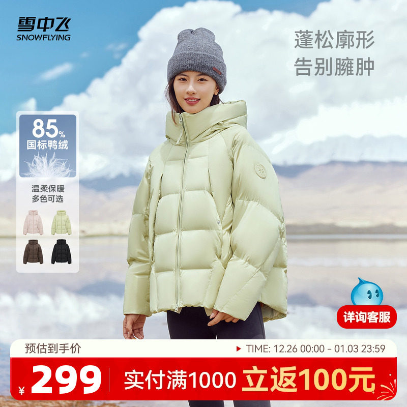 雪中飞2025冬新款女士短款连帽羽绒服廓形插肩袖小个子宽松保暖