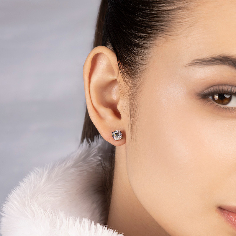 999纯银耳钉女养耳洞耳骨钉小众高级感锆石耳蜗钉水钻耳环银耳饰
