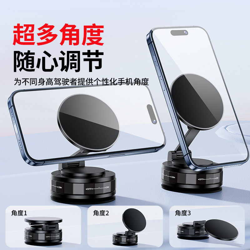 2025新款强磁真空吸盘磁吸车载手机支架magsafe汽车720°旋转折叠升降便携多功能桌面浴室墙壁通用手机架吸附