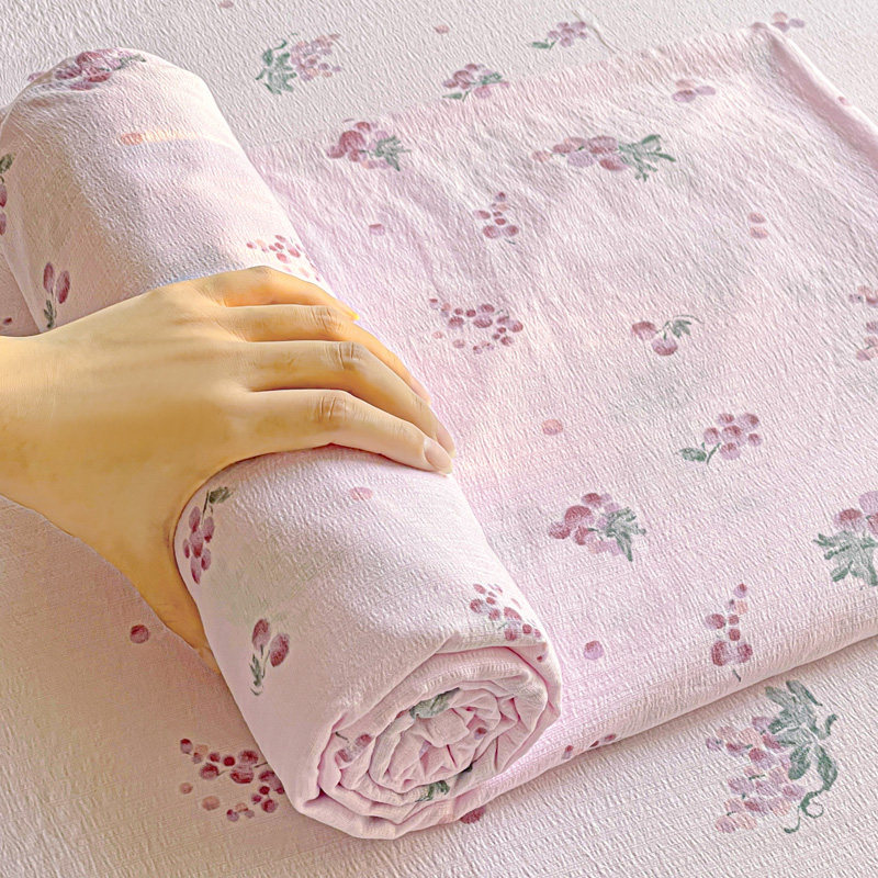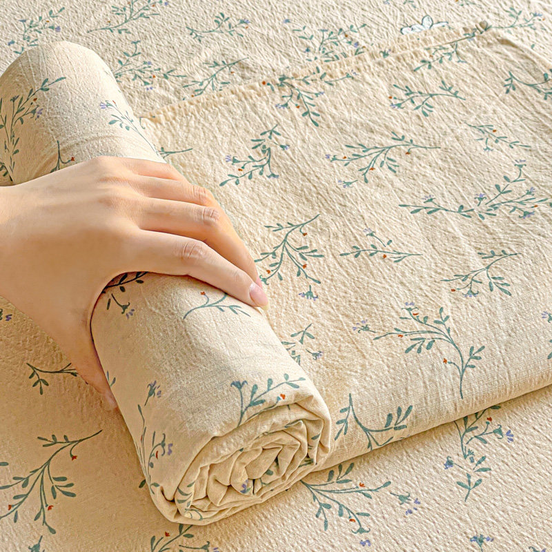 奶油风碎花双层纱床单三件套单件100%水洗棉被单卧室双人学生宿舍
