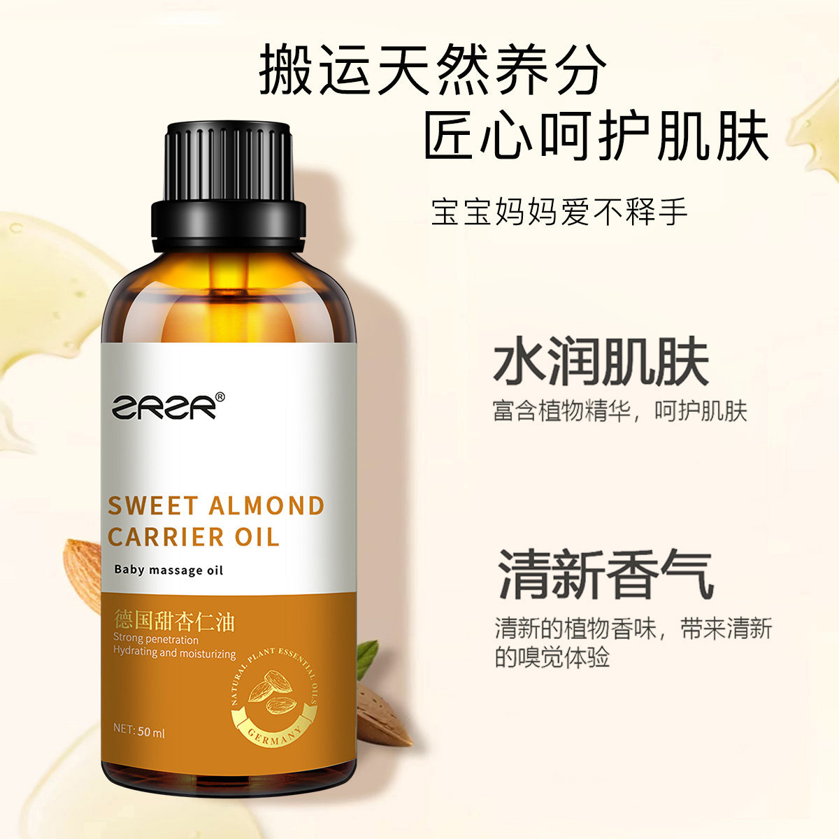 ZRZR甜杏仁精油植物油基础油肌肤按摩保湿润肤护肤油纯露冷压