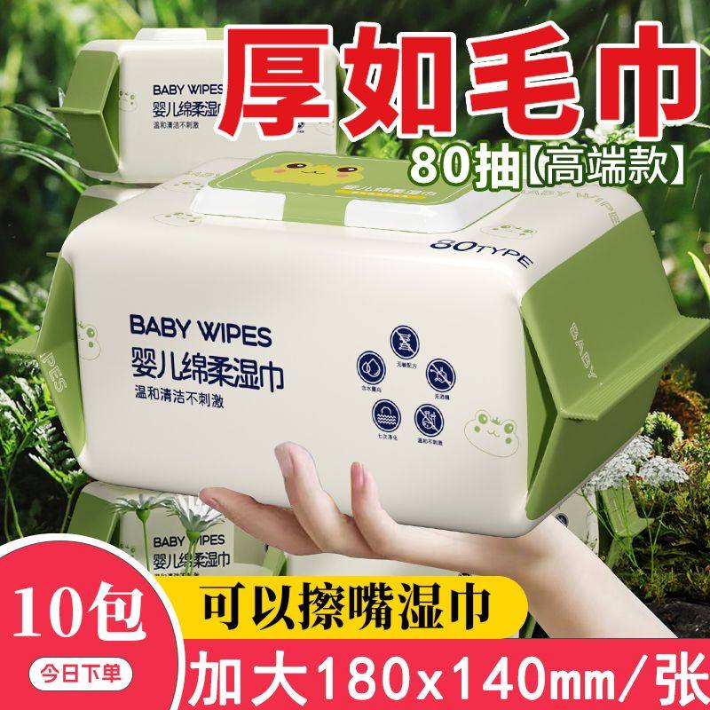 80抽装10大包加厚珍珠纹婴儿湿巾新生儿宝宝湿纸巾手口屁专用特价