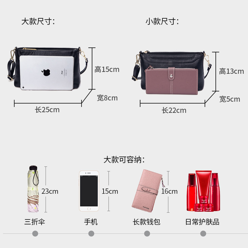 头层牛皮 小挎包 软牛皮 多隔层 手抓包