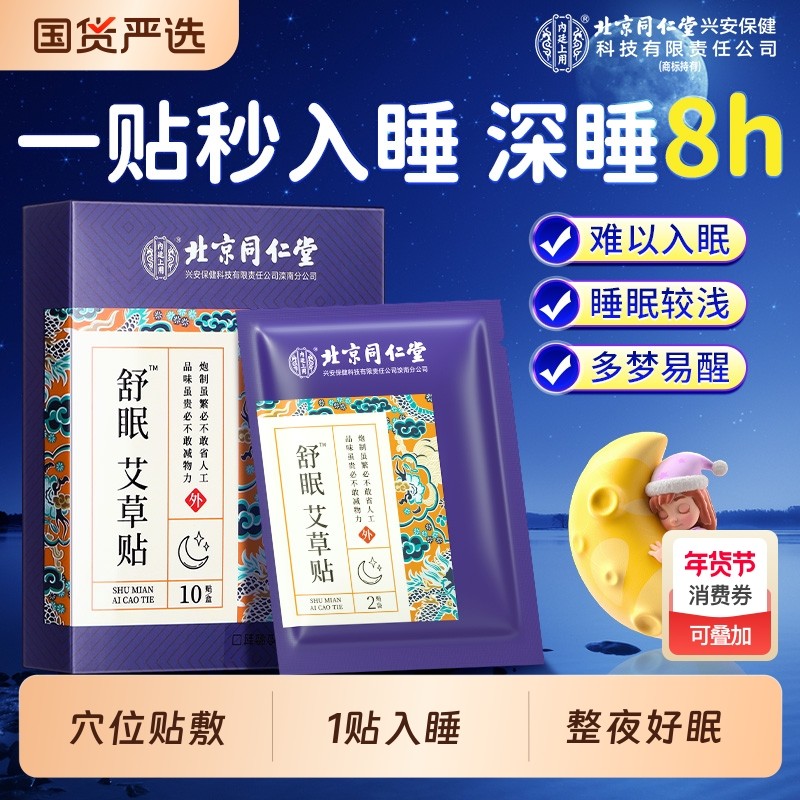 北京同仁堂艾草睡眠舒眠贴快速入眠非秒睡安神贴入睡困难助眠神器