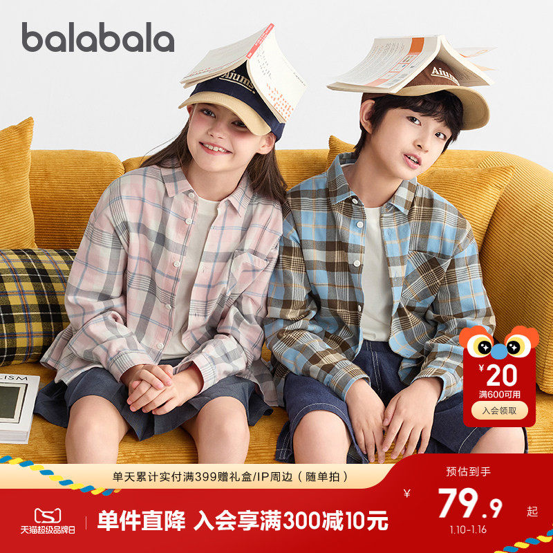 巴拉巴拉童装儿童衬衫长袖男童女童2026新款春秋舒适超柔绒亲子装