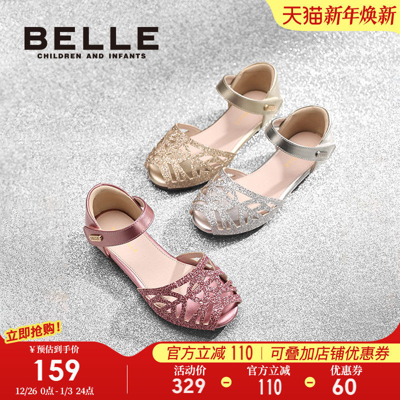 百丽童鞋女童凉鞋夏季新款小女孩公主鞋中大童鱼嘴凉鞋儿童宝宝鞋