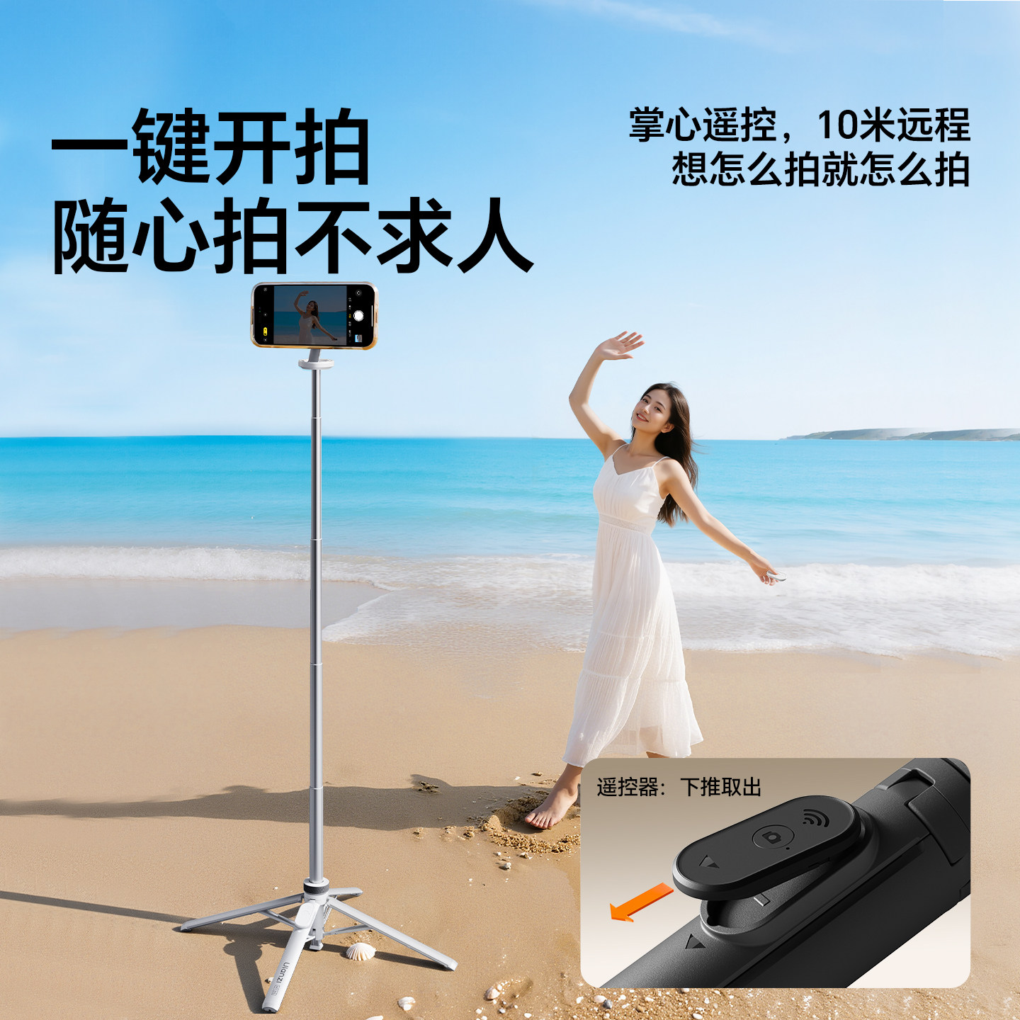 SEAJIC施吉客落地开磁吸自拍杆2025新款丢丢杆手持落地三脚架旅游便携360度旋转拍照神器直播拍摄演唱会支架