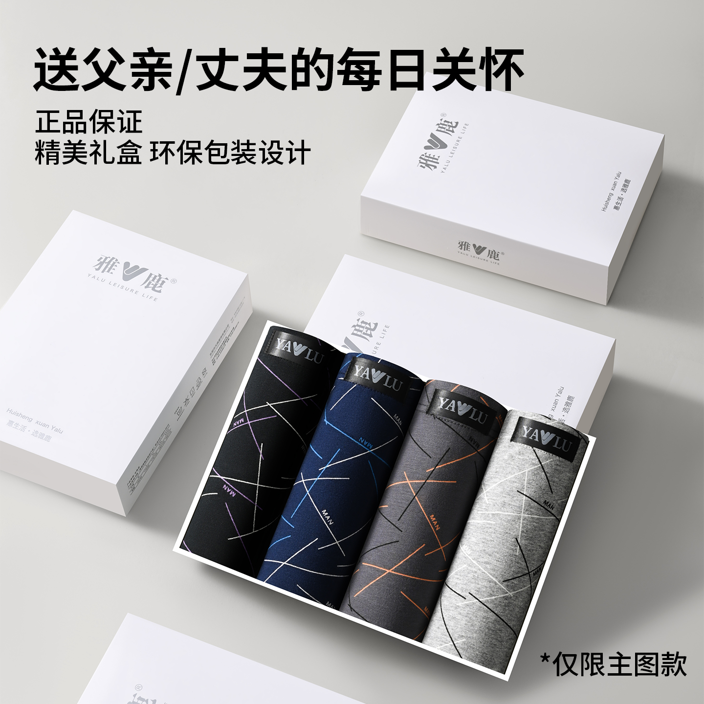 雅鹿男士内裤纯棉正品2025新款正品全棉透气短裤头衩男生中腰礼盒
