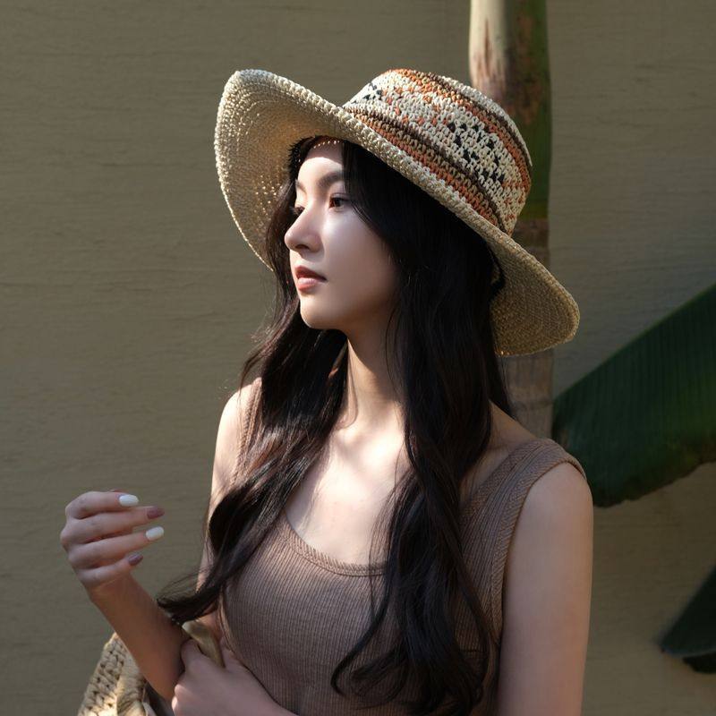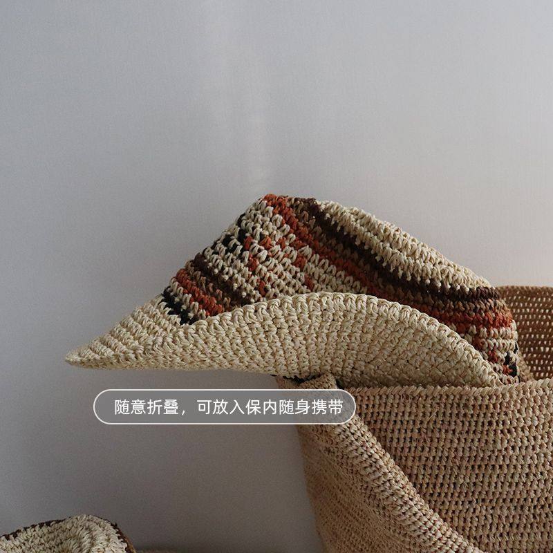 赫本风勾针女礼帽大帽檐爵士帽巴拿马沙滩度假旅游遮阳可折叠秋季